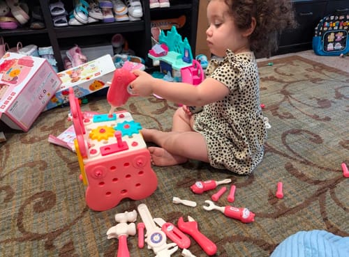 "Nous cherchions un cadeau éducatif pour les 4 ans de notre fille, qui soit différent des poupées habituelles. Le côté STEM et Montessori de ce kit nous a tout de suite plu. L'histoire ? Elle adore nous "réparer" des choses ! Le kit est incroyablement complet, l'élément clé est sans aucun doute la perceuse électrique sécurisée – le bruit et la lumière la rendent folle de joie. Les outils sont robustes et semblent vraiment tenir dans la durée. Un excellent investissement pour développer la logique et la motricité en s'amusant.