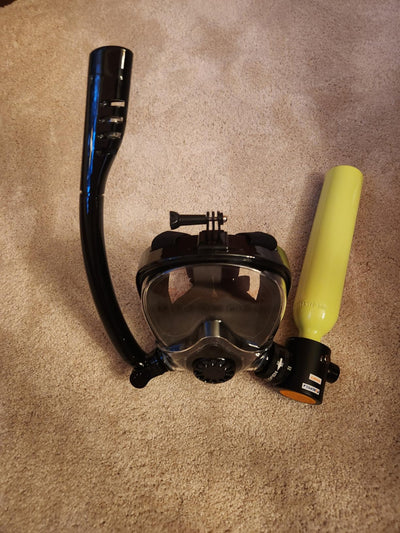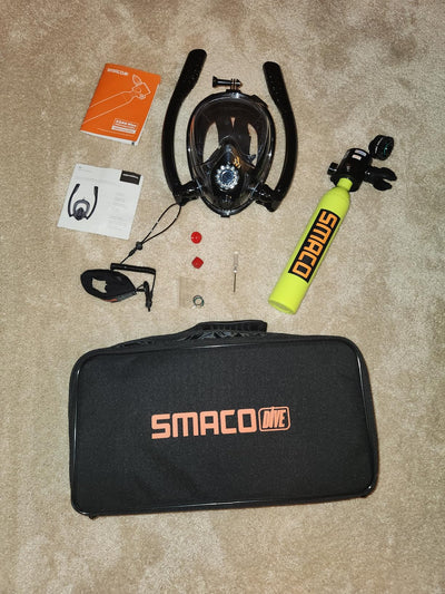 - Tout-en-un : Cylindre, pompe et masque rangés dans un sac étanche (inclus).
