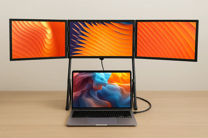 🚀 TriMon – L'Écran Triple Portable Qui Transforme Votre Laptop en Station de Travail Pro avec 3 Écrans Full HD – Sans Câbles, Sans Adaptateurs, Sans Complications !
